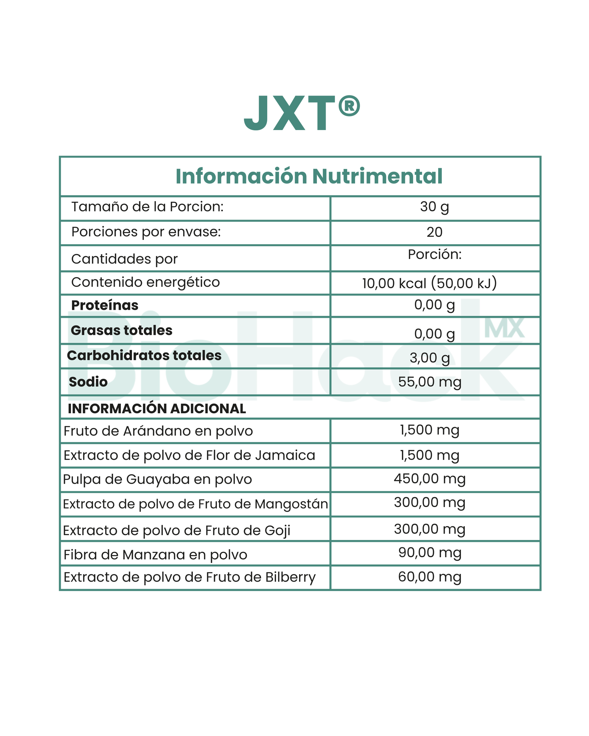 JXT® combina frutos completos en polvo + extractos concentrados, logrando una mezcla que aporta antioxidantes hidrosolubles, fibra funcional y compuestos bioactivos que actúan de forma sinérgica, no aislada.